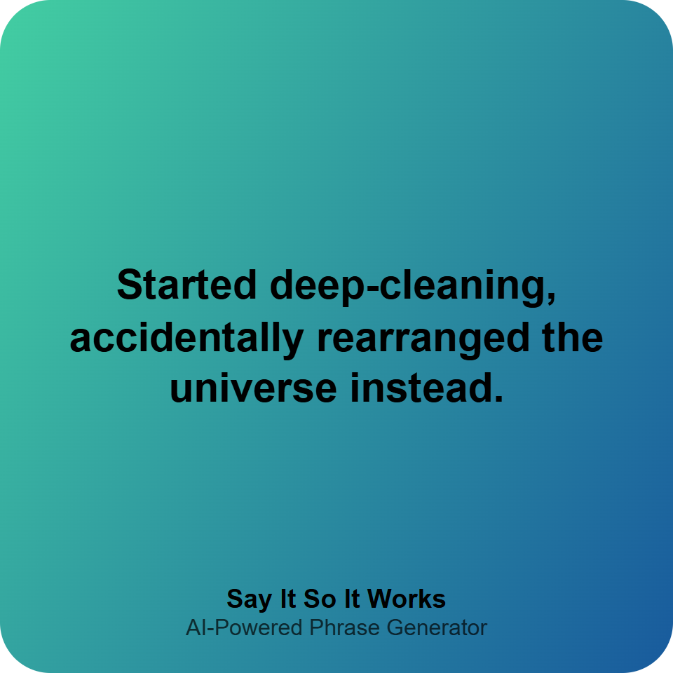 Started deep-cleaning, accidentally rearranged the universe instead.