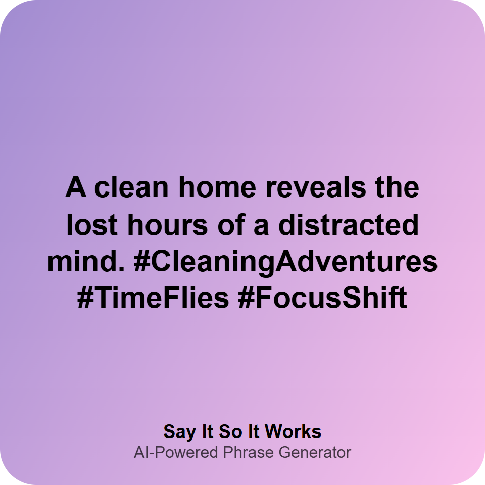 A clean home reveals the lost hours of a distracted mind. #CleaningAdventures #TimeFlies #FocusShift