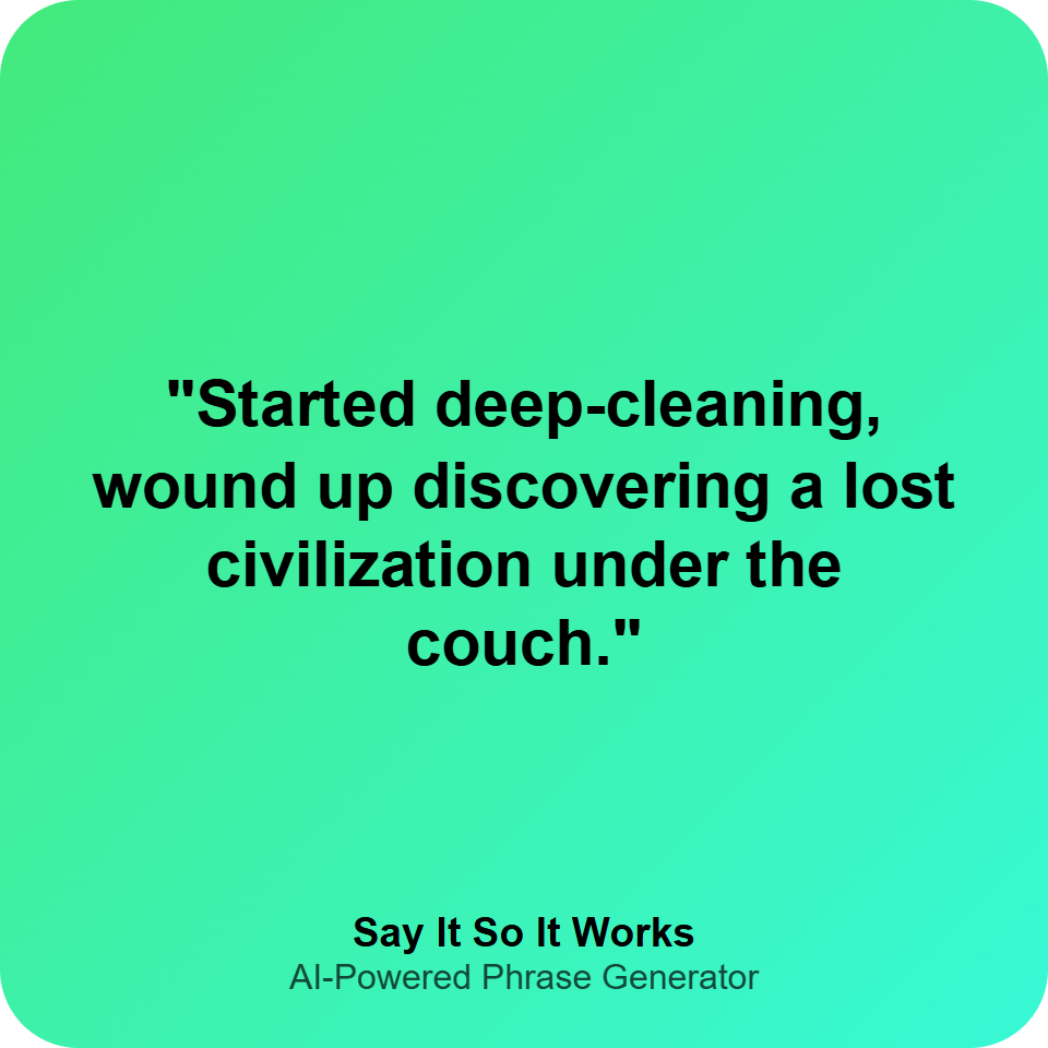 "Started deep-cleaning, wound up discovering a lost civilization under the couch."