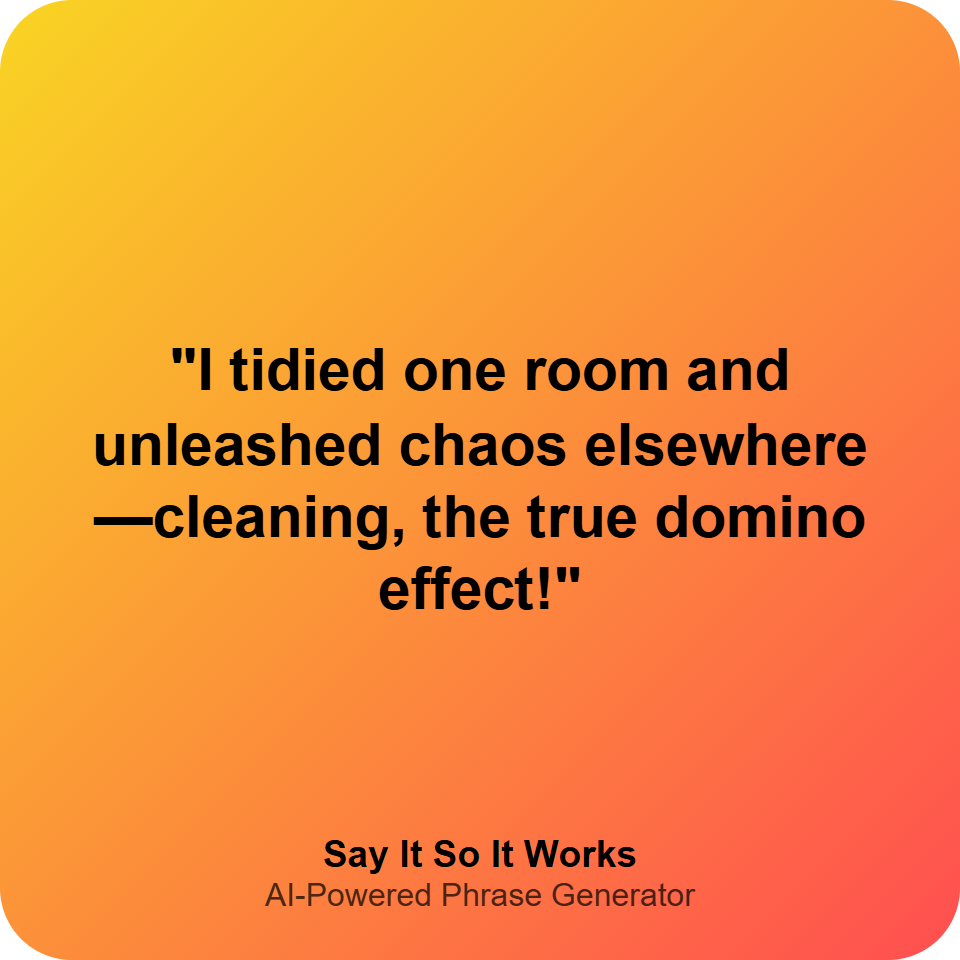 "I tidied one room and unleashed chaos elsewhere—cleaning, the true domino effect!"