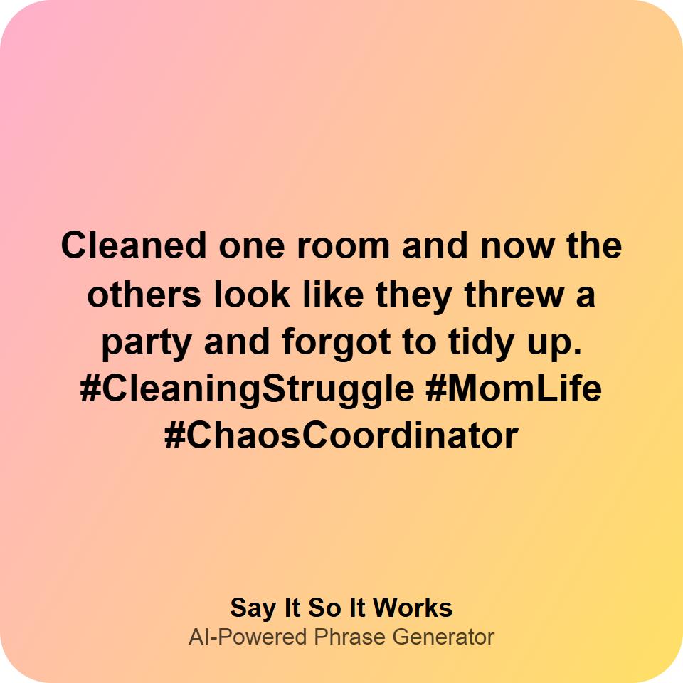 Cleaned one room and now the others look like they threw a party and forgot to tidy up. #CleaningStruggle #MomLife #ChaosCoordinator