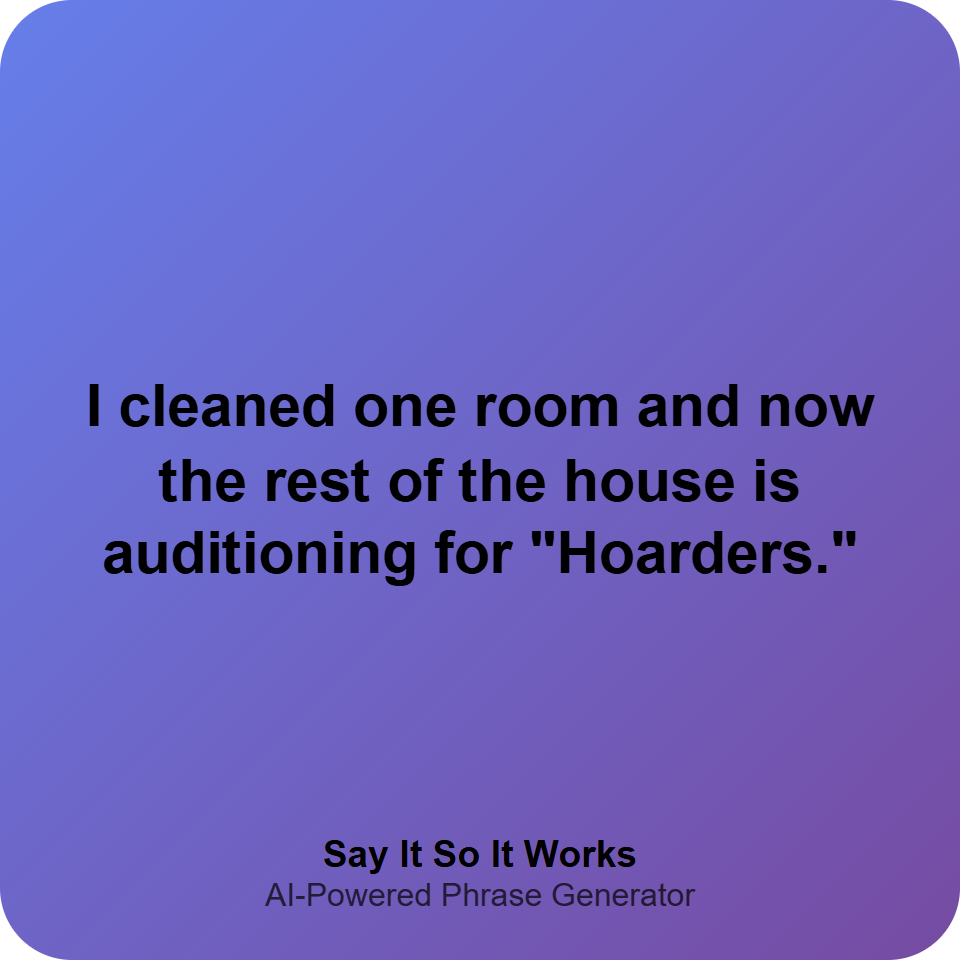 I cleaned one room and now the rest of the house is auditioning for "Hoarders."
