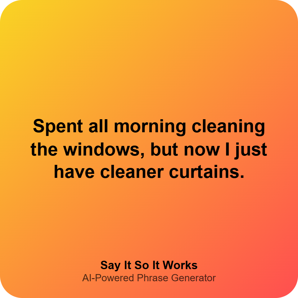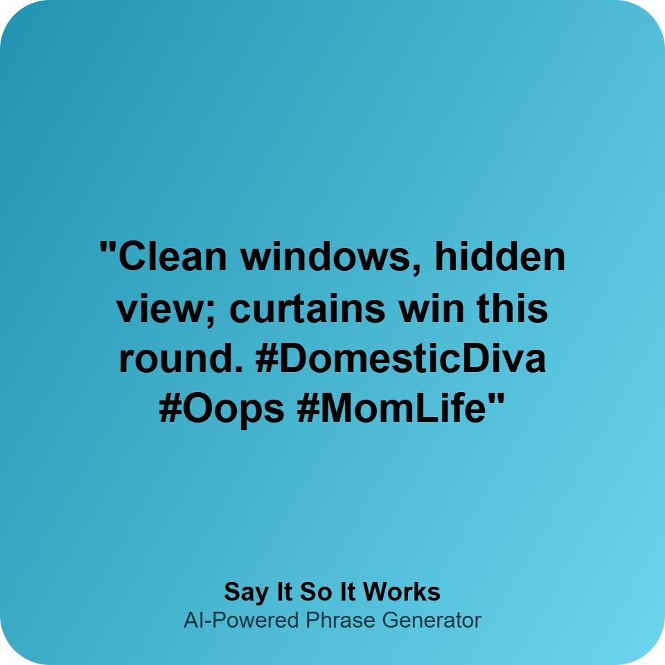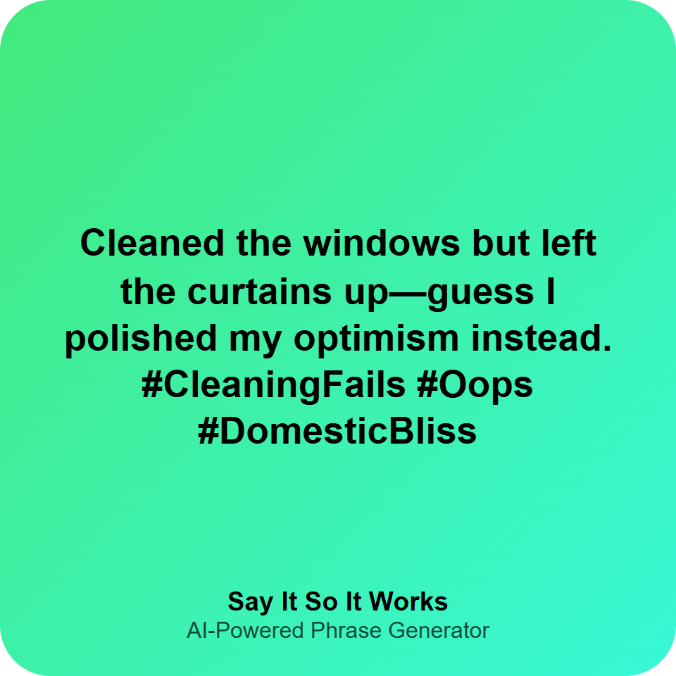 Cleaned the windows but left the curtains up—guess I polished my optimism instead. #CleaningFails #Oops #DomesticBliss