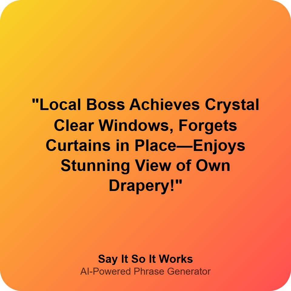 "Local Boss Achieves Crystal Clear Windows, Forgets Curtains in Place—Enjoys Stunning View of Own Drapery!"