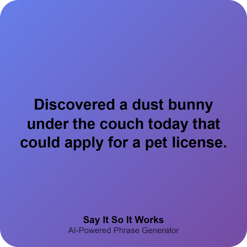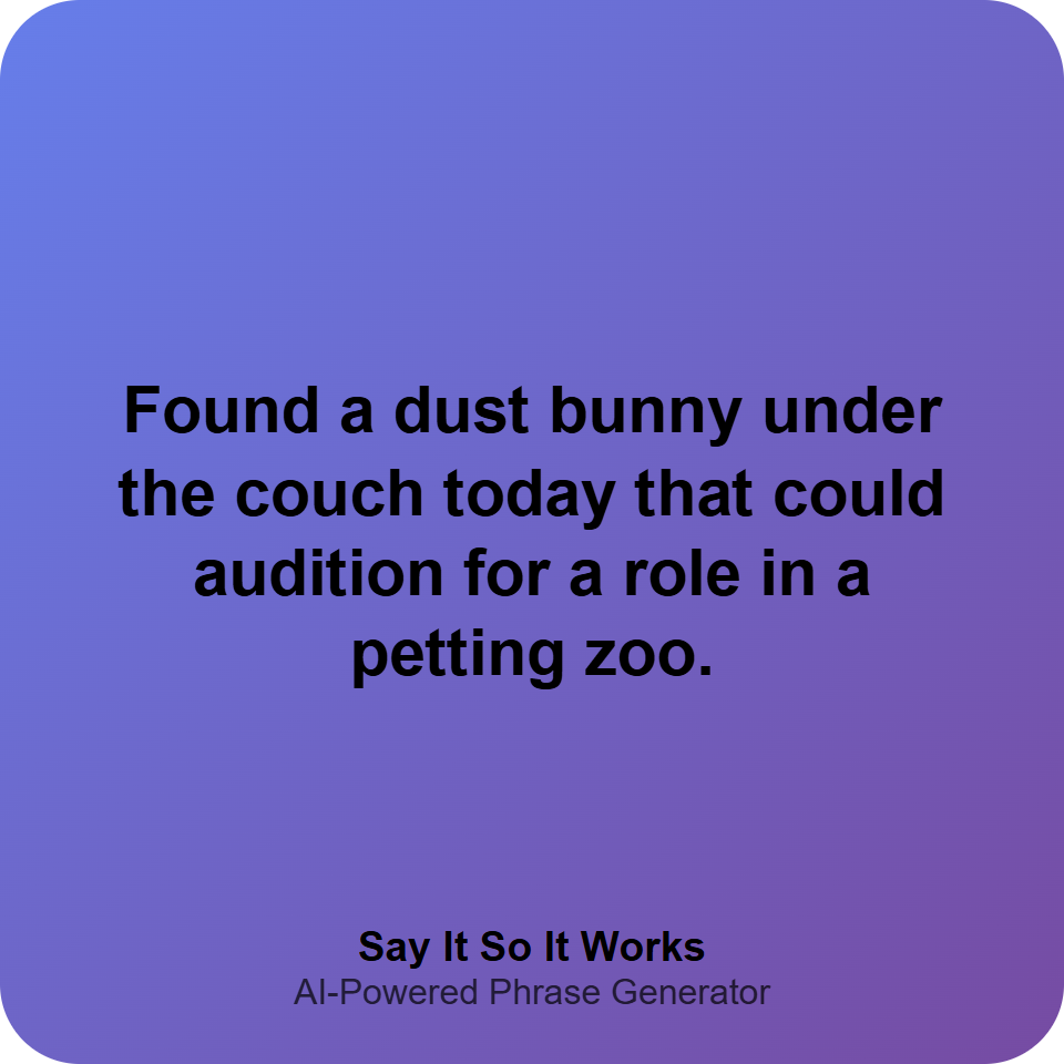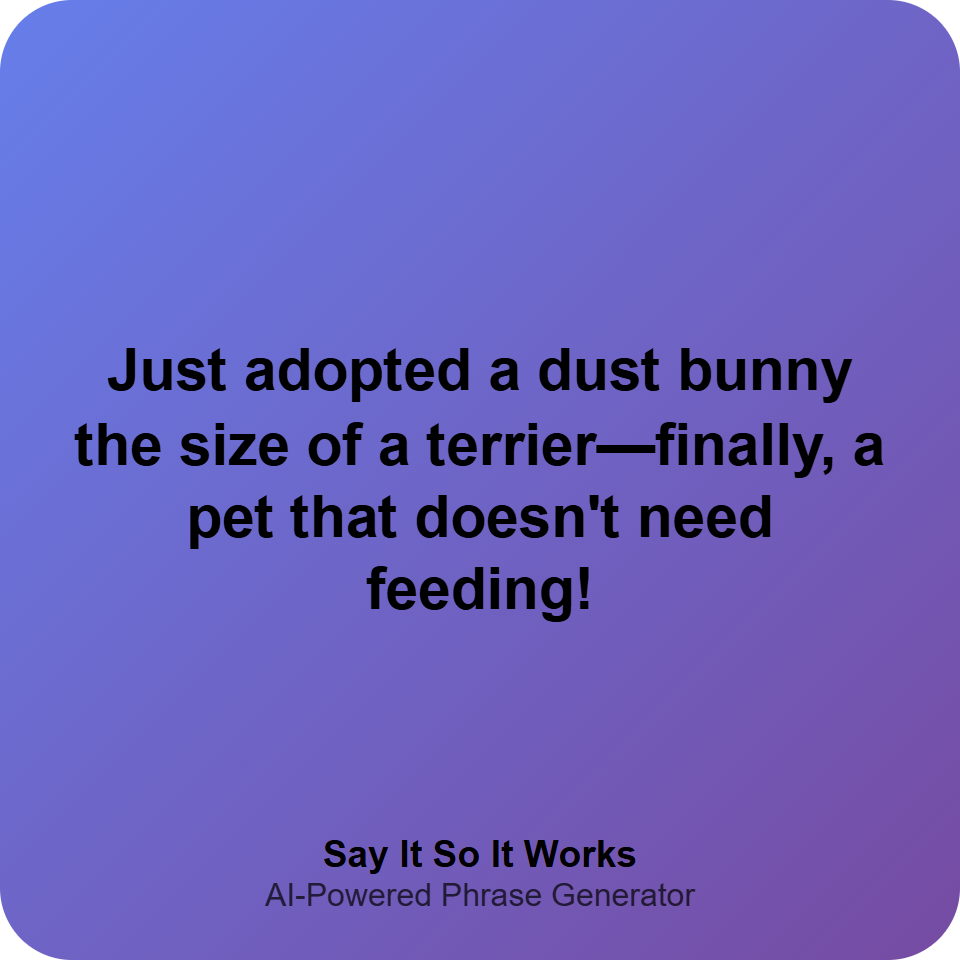 Just adopted a dust bunny the size of a terrier—finally, a pet that doesn't need feeding!