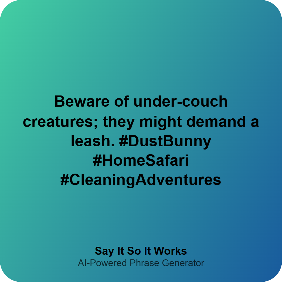 Beware of under-couch creatures; they might demand a leash. #DustBunny #HomeSafari #CleaningAdventures
