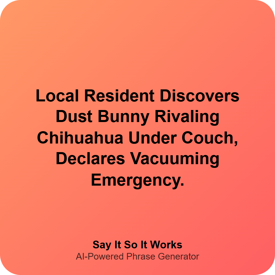Local Resident Discovers Dust Bunny Rivaling Chihuahua Under Couch, Declares Vacuuming Emergency.