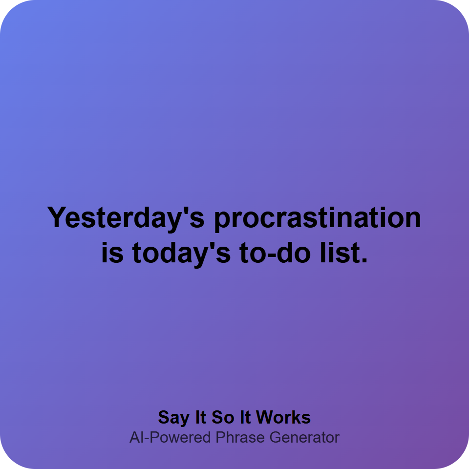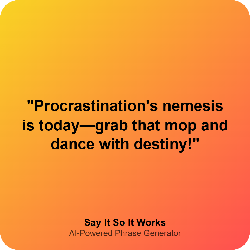 "Procrastination's nemesis is today—grab that mop and dance with destiny!"