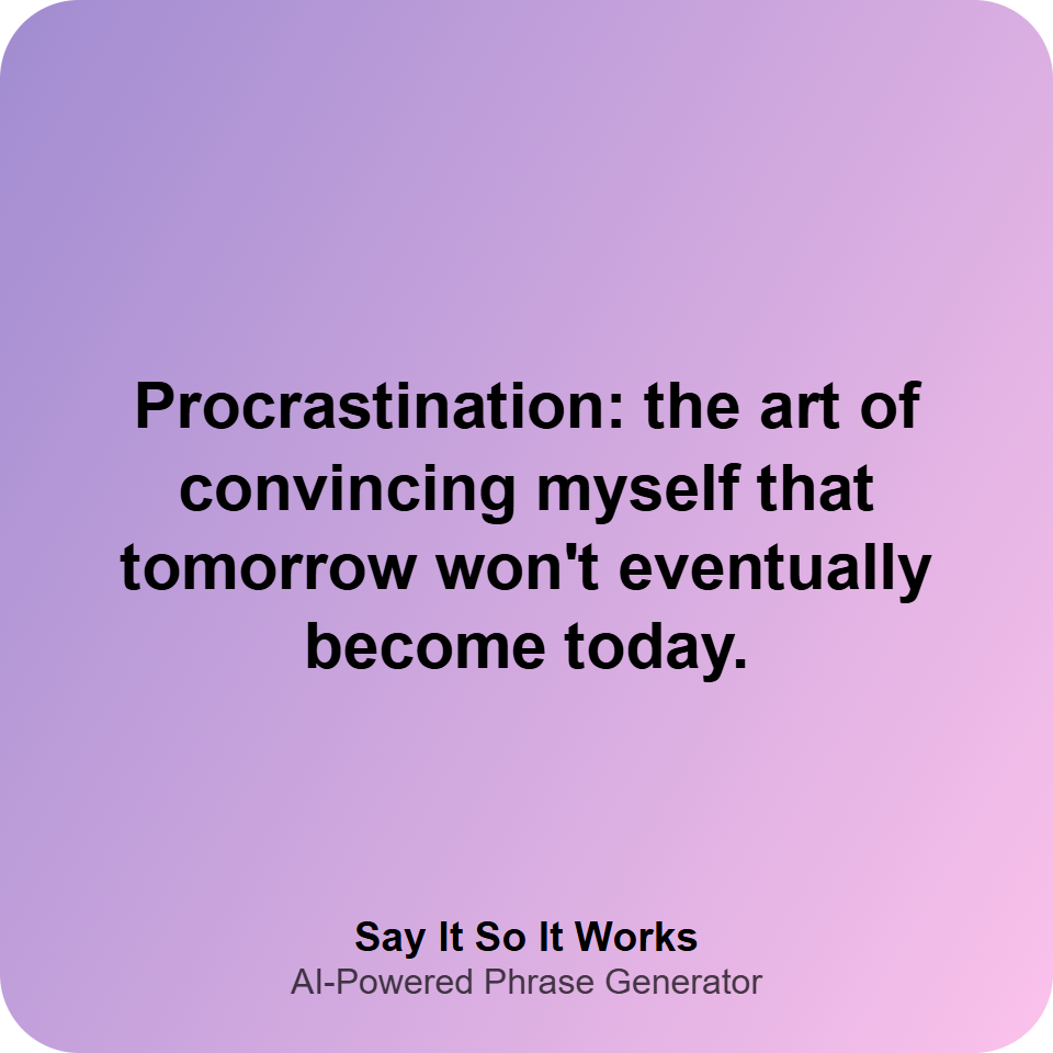 Procrastination: the art of convincing myself that tomorrow won't eventually become today.