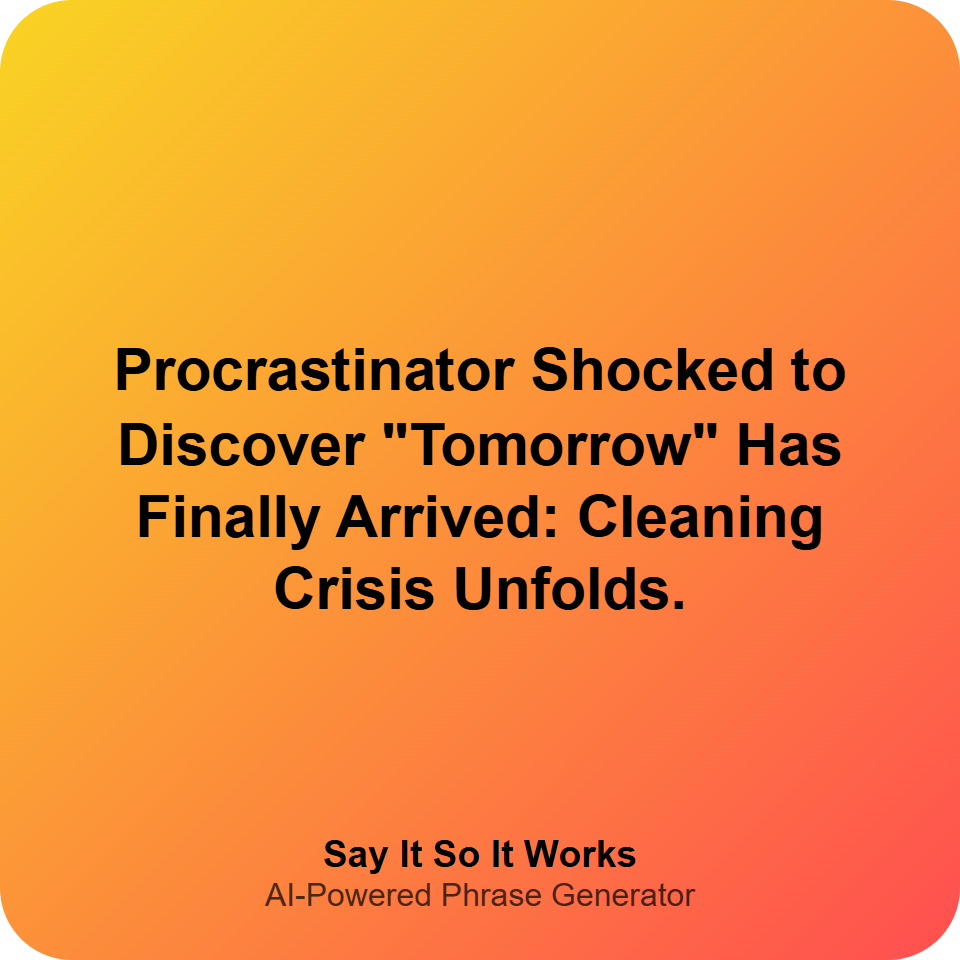 Procrastinator Shocked to Discover "Tomorrow" Has Finally Arrived: Cleaning Crisis Unfolds.