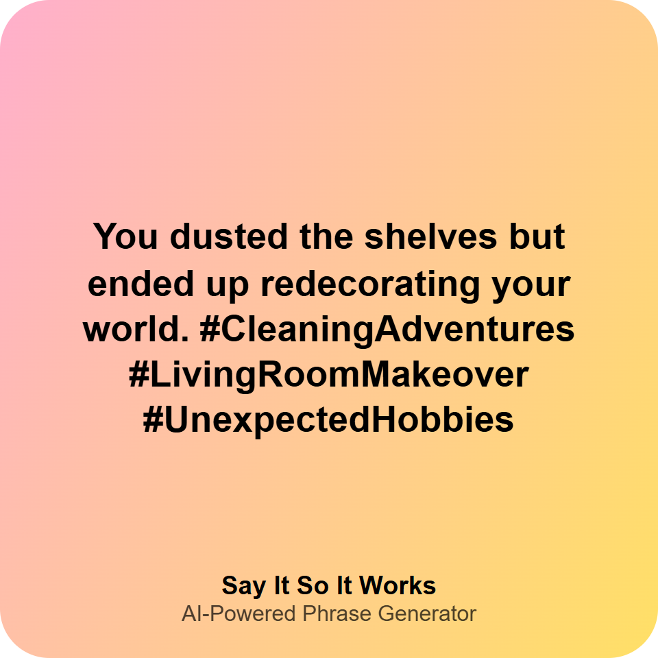 You dusted the shelves but ended up redecorating your world. #CleaningAdventures #LivingRoomMakeover #UnexpectedHobbies