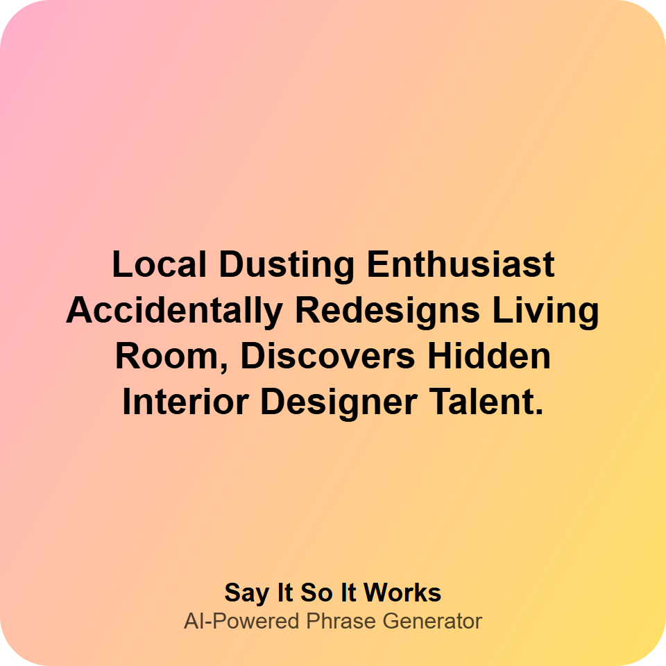 Local Dusting Enthusiast Accidentally Redesigns Living Room, Discovers Hidden Interior Designer Talent.