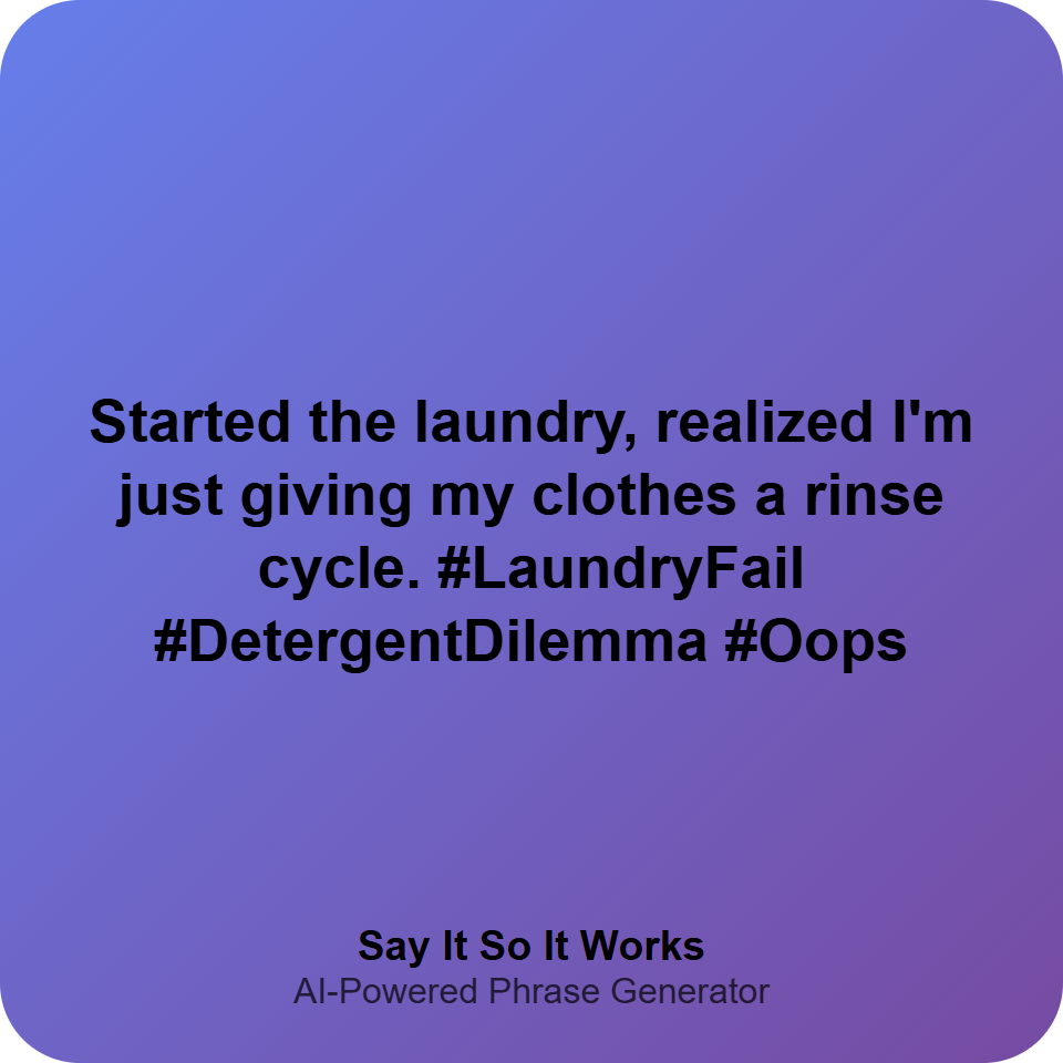 Started the laundry, realized I'm just giving my clothes a rinse cycle. #LaundryFail #DetergentDilemma #Oops