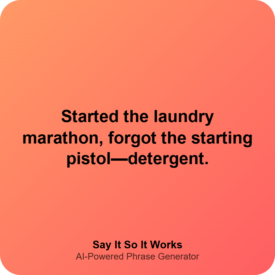 Started the laundry marathon, forgot the starting pistol—detergent.