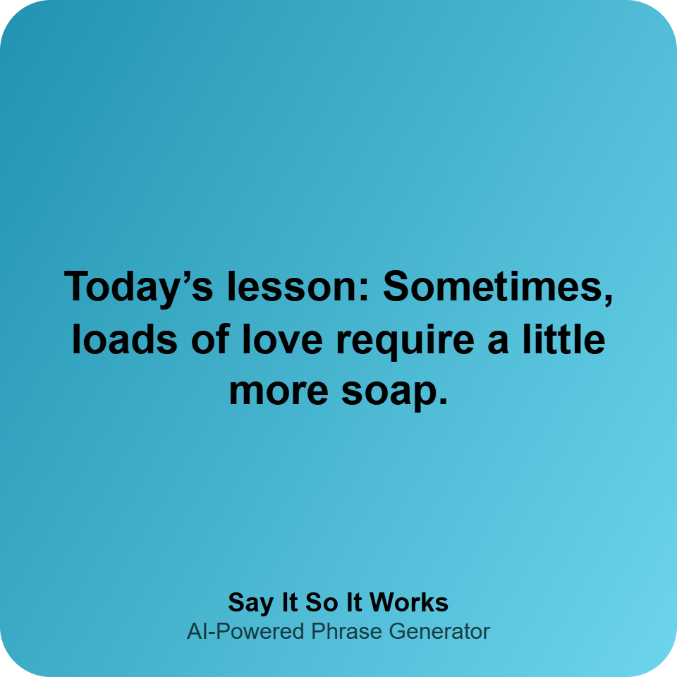 Today’s lesson: Sometimes, loads of love require a little more soap.