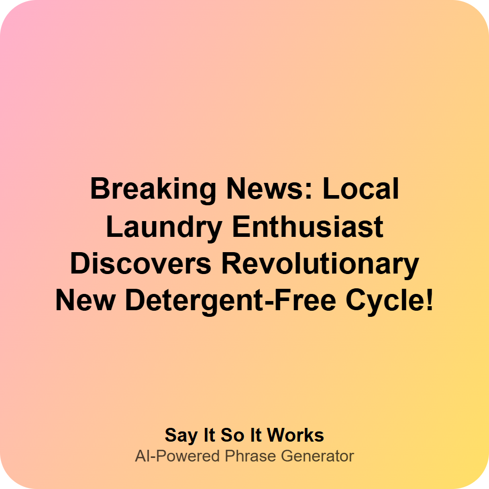Breaking News: Local Laundry Enthusiast Discovers Revolutionary New Detergent-Free Cycle!