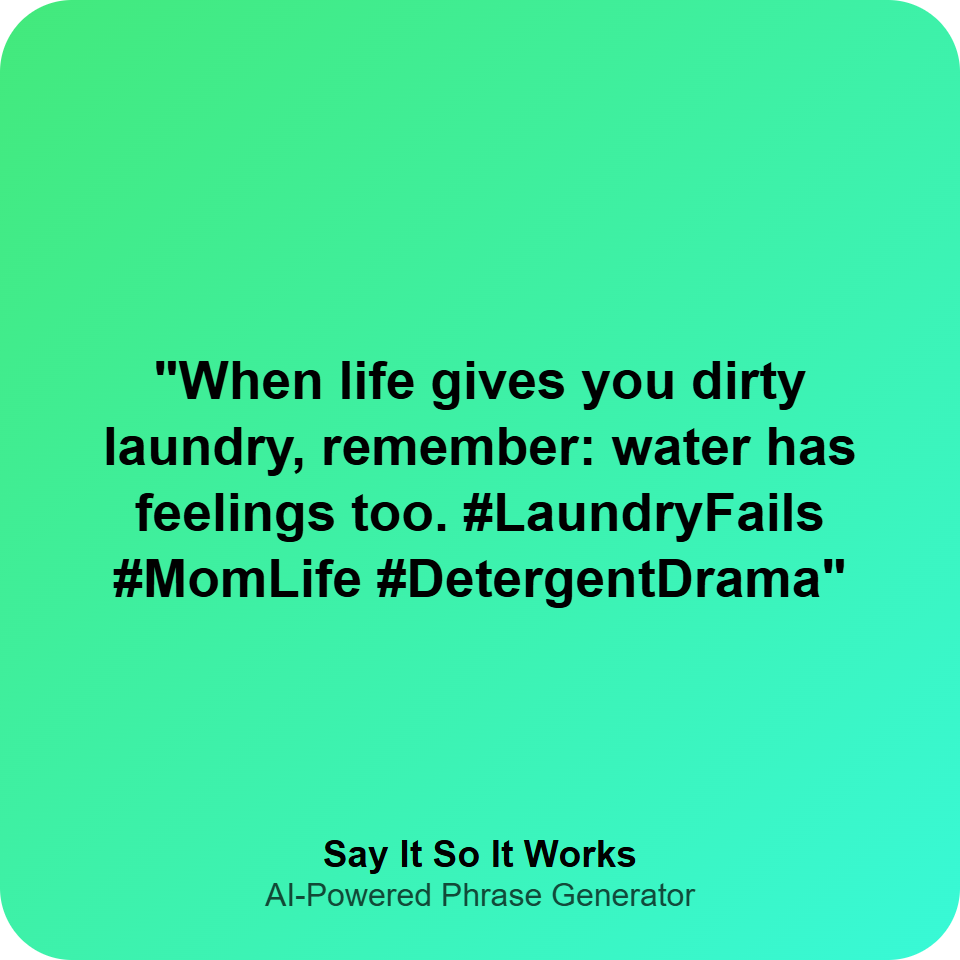"When life gives you dirty laundry, remember: water has feelings too. #LaundryFails #MomLife #DetergentDrama"