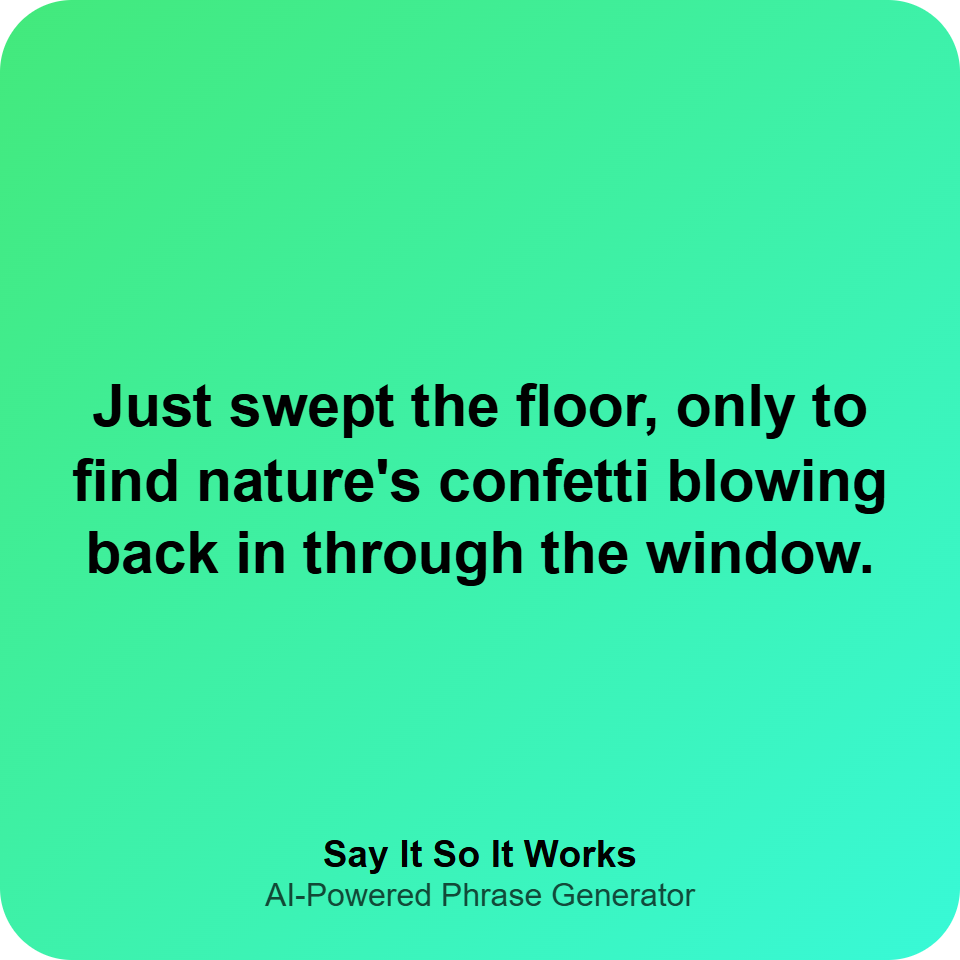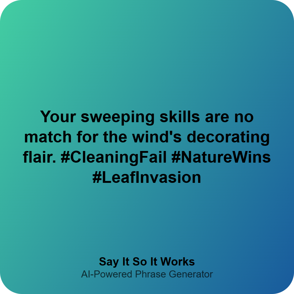 Your sweeping skills are no match for the wind's decorating flair. #CleaningFail #NatureWins #LeafInvasion