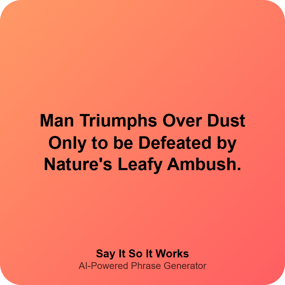 Man Triumphs Over Dust Only to be Defeated by Nature's Leafy Ambush.