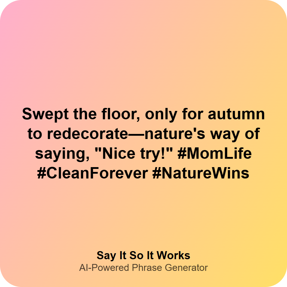 Swept the floor, only for autumn to redecorate—nature's way of saying, "Nice try!" #MomLife #CleanForever #NatureWins
