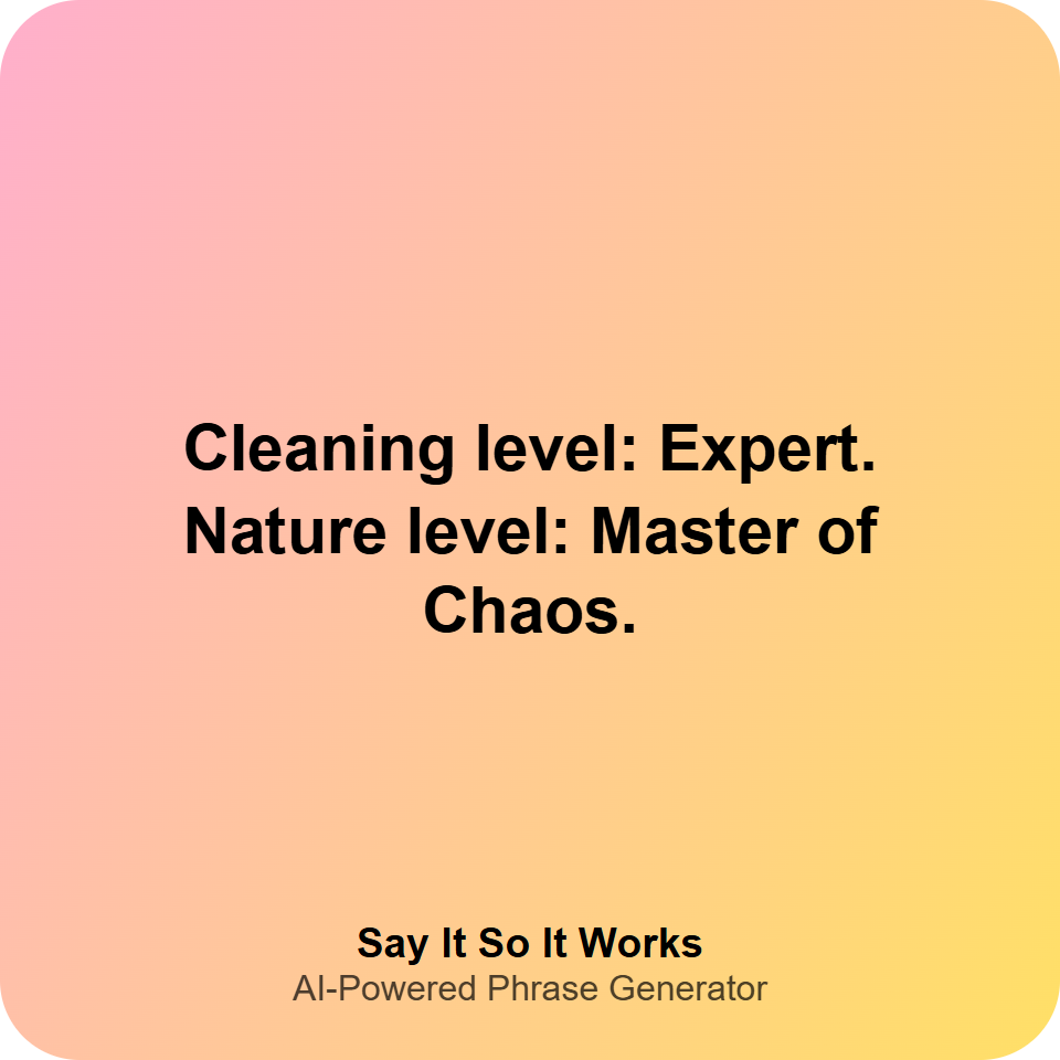 Cleaning level: Expert. Nature level: Master of Chaos.