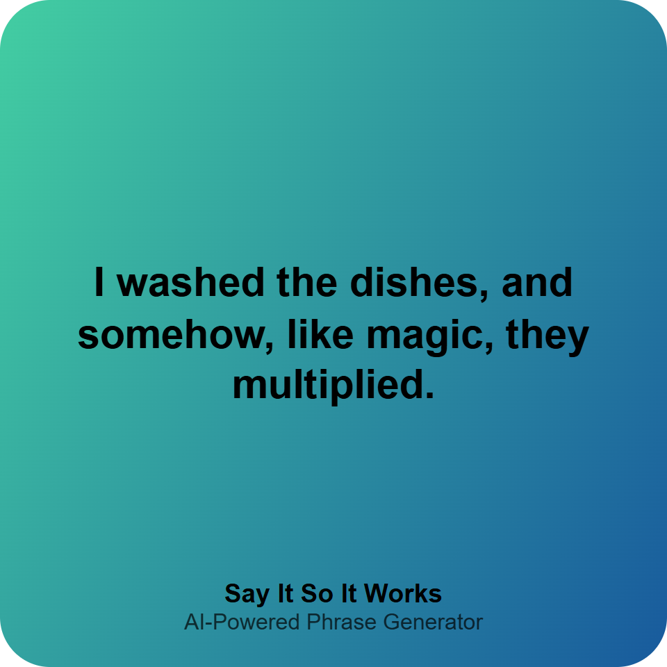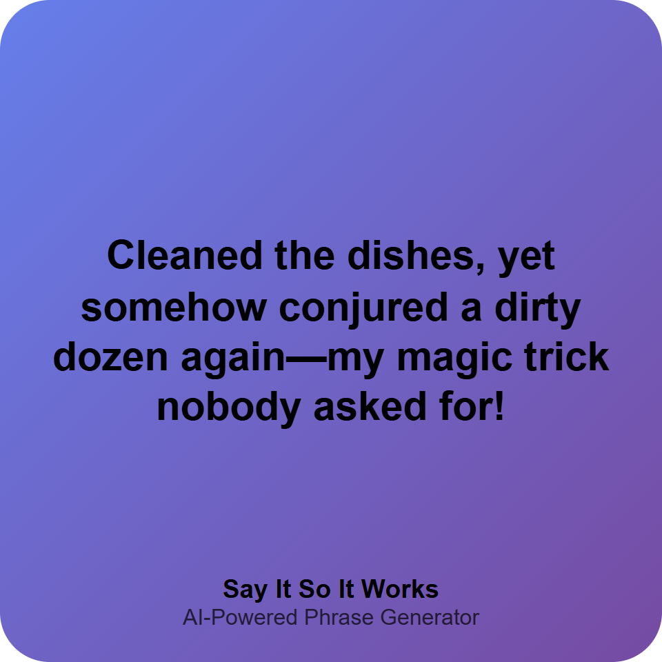 Cleaned the dishes, yet somehow conjured a dirty dozen again—my magic trick nobody asked for!