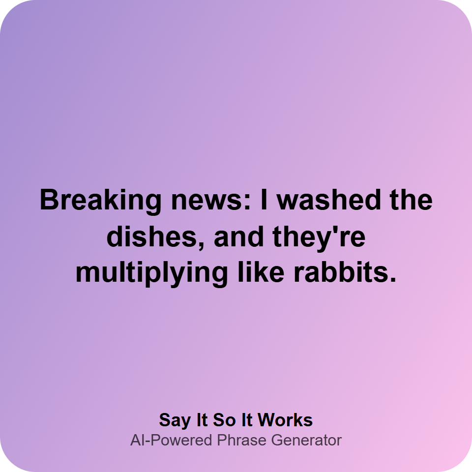 Breaking news: I washed the dishes, and they're multiplying like rabbits.