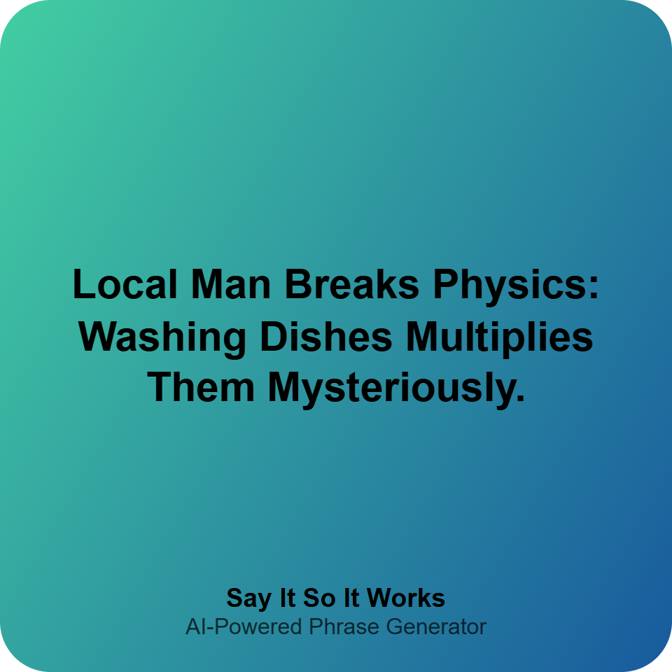 Local Man Breaks Physics: Washing Dishes Multiplies Them Mysteriously.
