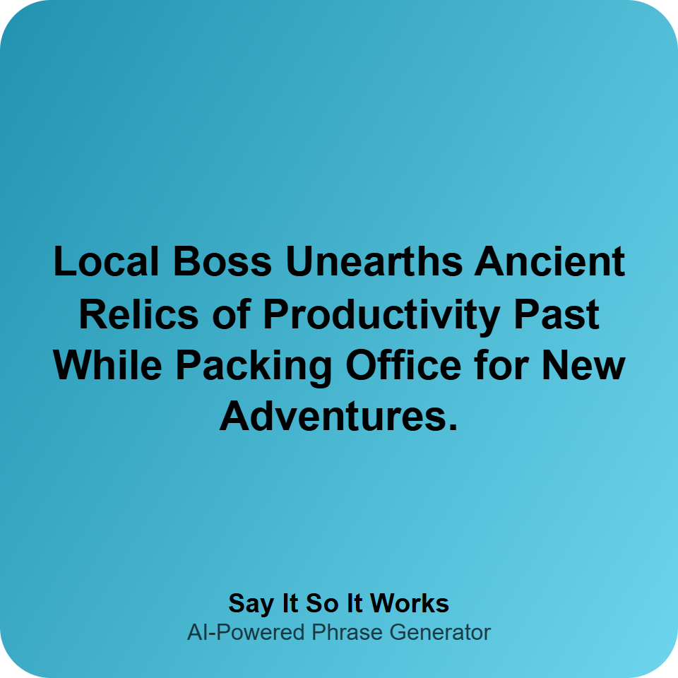 Local Boss Unearths Ancient Relics of Productivity Past While Packing Office for New Adventures.