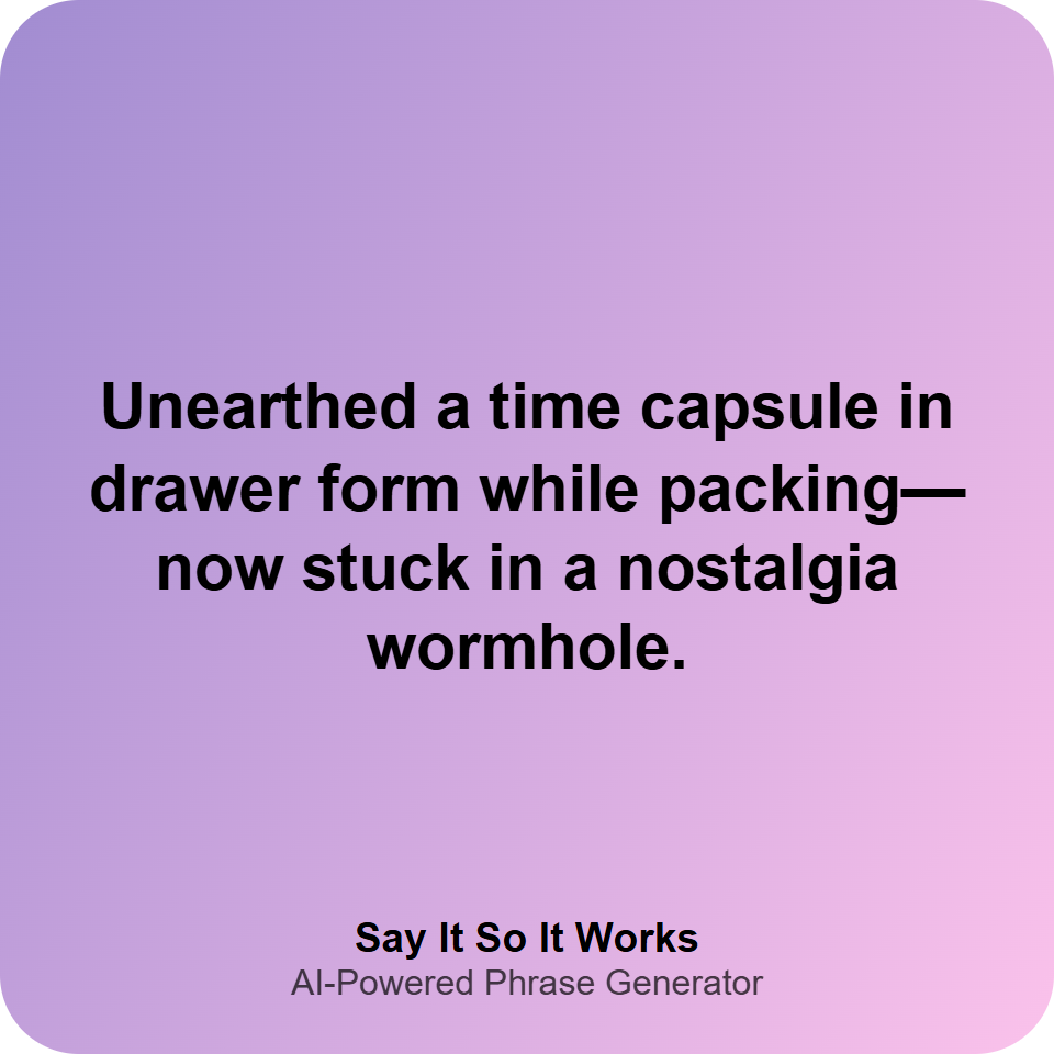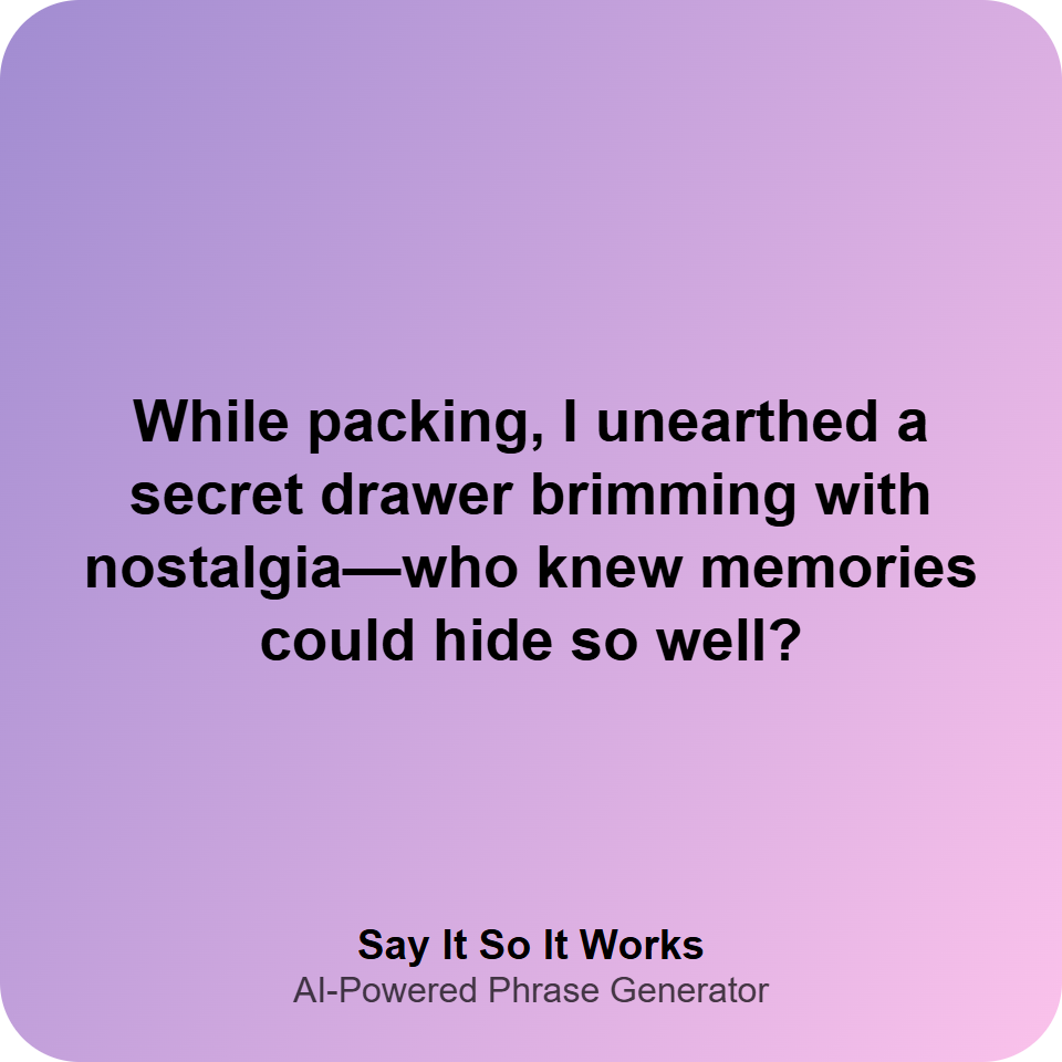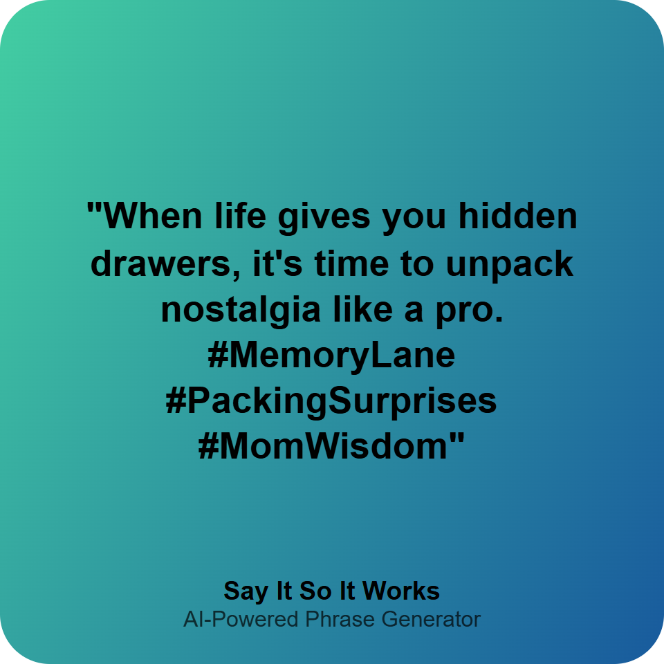 "When life gives you hidden drawers, it's time to unpack nostalgia like a pro. #MemoryLane #PackingSurprises #MomWisdom"