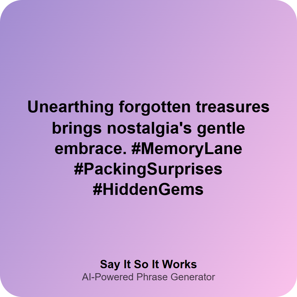 Unearthing forgotten treasures brings nostalgia's gentle embrace. #MemoryLane #PackingSurprises #HiddenGems