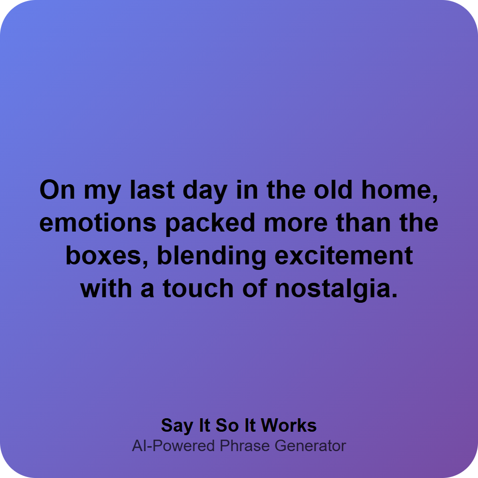 On my last day in the old home, emotions packed more than the boxes, blending excitement with a touch of nostalgia.