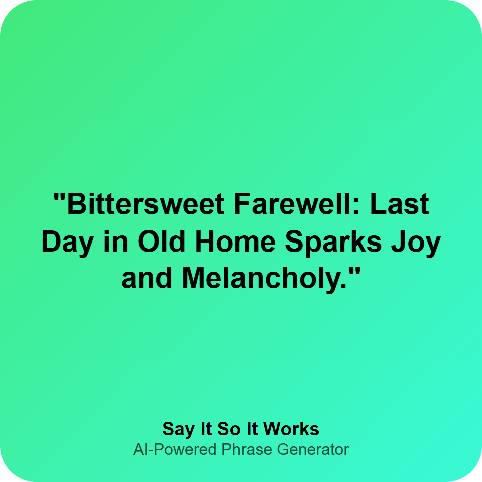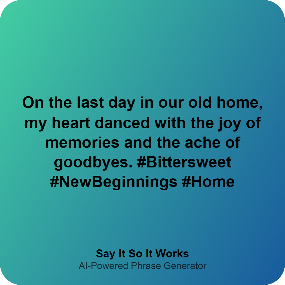 "Bittersweet Farewell: Last Day in Old Home Sparks Joy and Melancholy."