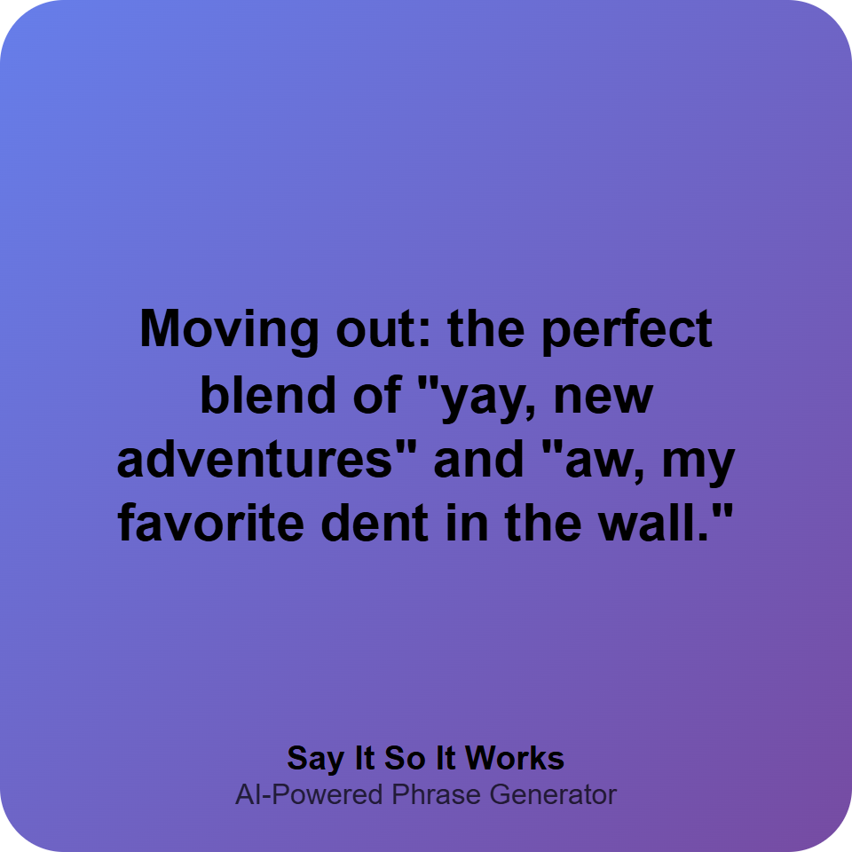Moving out: the perfect blend of "yay, new adventures" and "aw, my favorite dent in the wall."