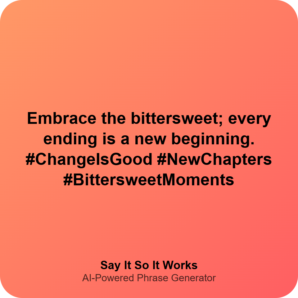 Embrace the bittersweet; every ending is a new beginning. #ChangeIsGood #NewChapters #BittersweetMoments