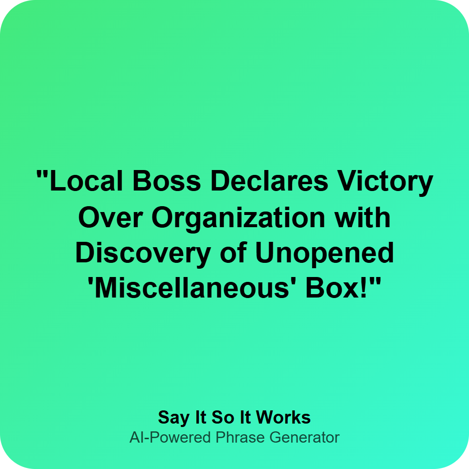 "Local Boss Declares Victory Over Organization with Discovery of Unopened 'Miscellaneous' Box!"