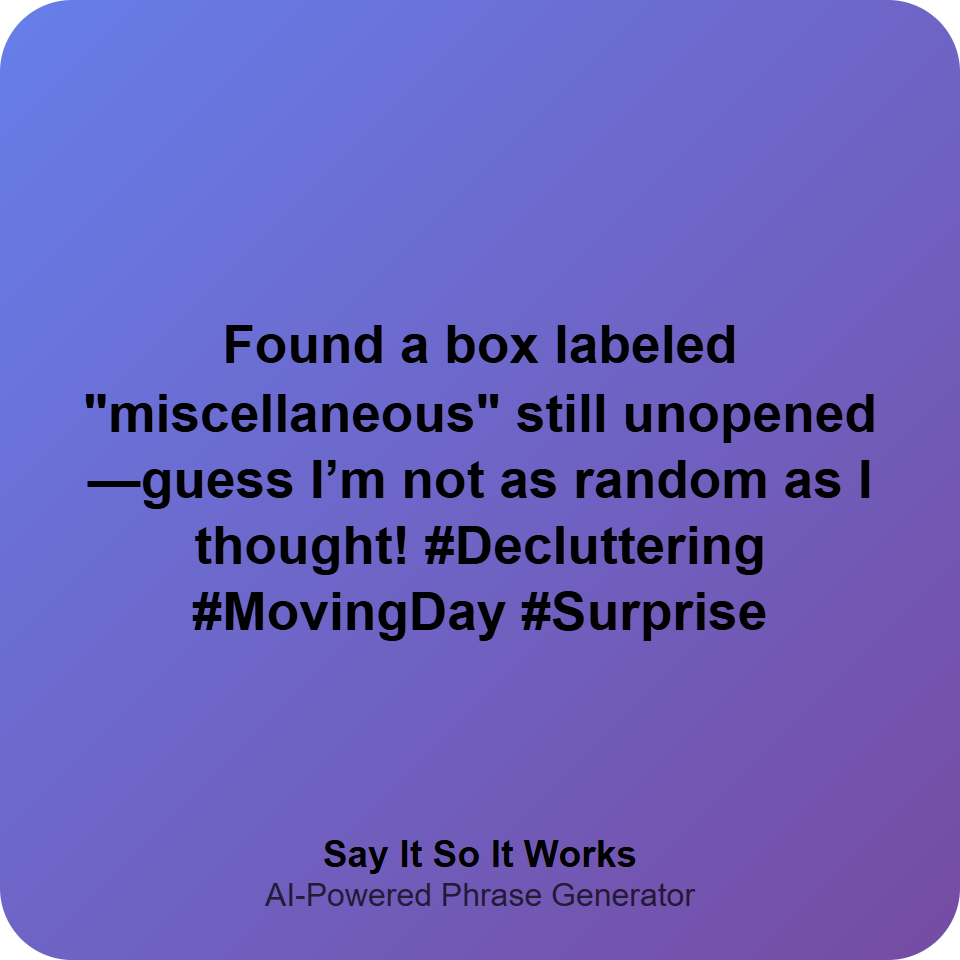 Found a box labeled "miscellaneous" still unopened—guess I’m not as random as I thought! #Decluttering #MovingDay #Surprise
