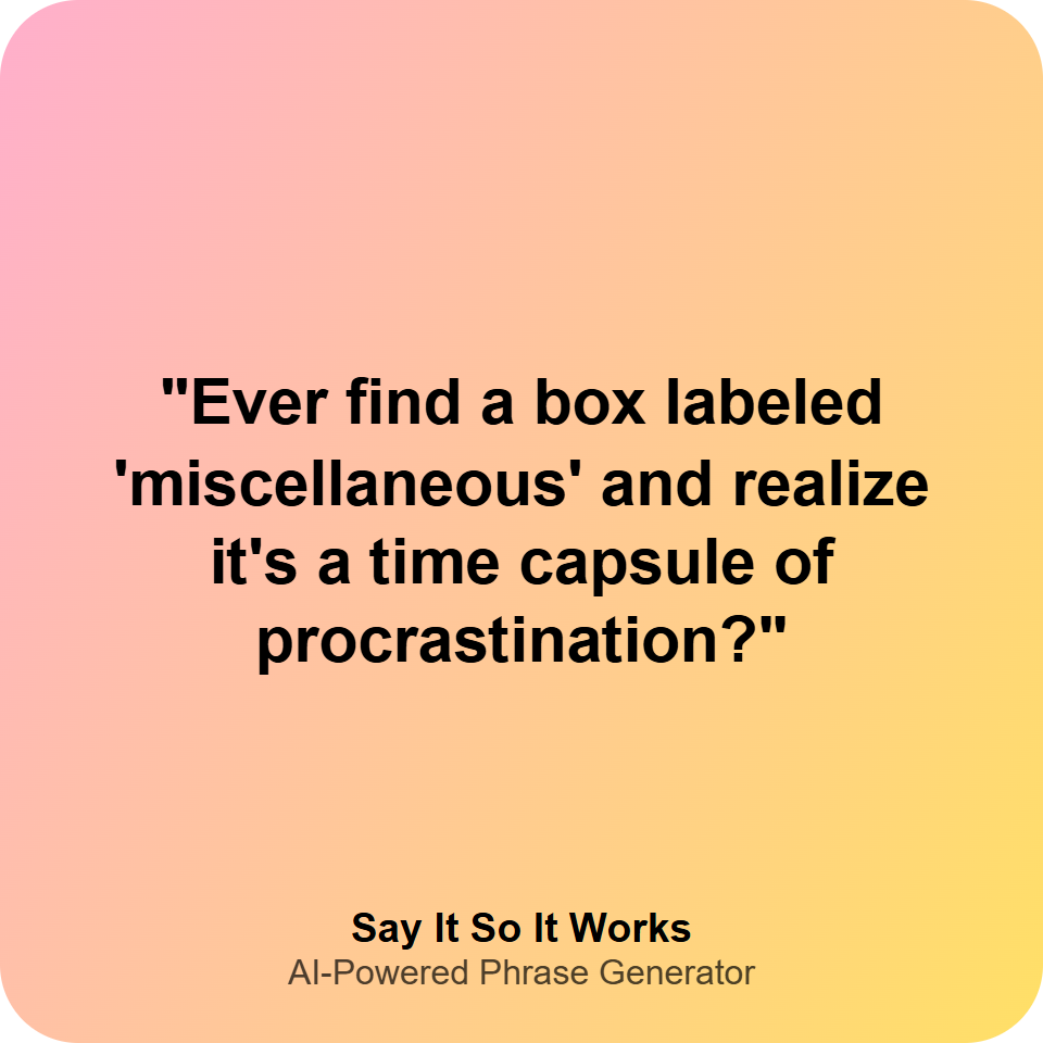 "Ever find a box labeled 'miscellaneous' and realize it's a time capsule of procrastination?"