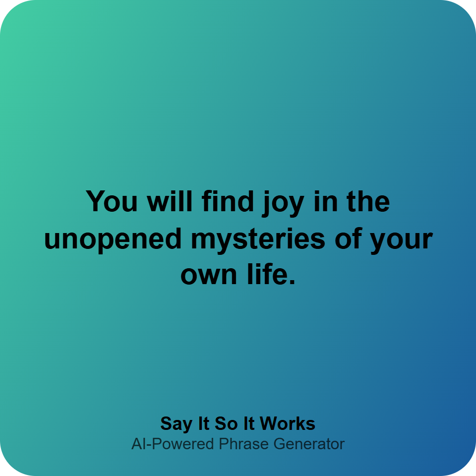 You will find joy in the unopened mysteries of your own life.