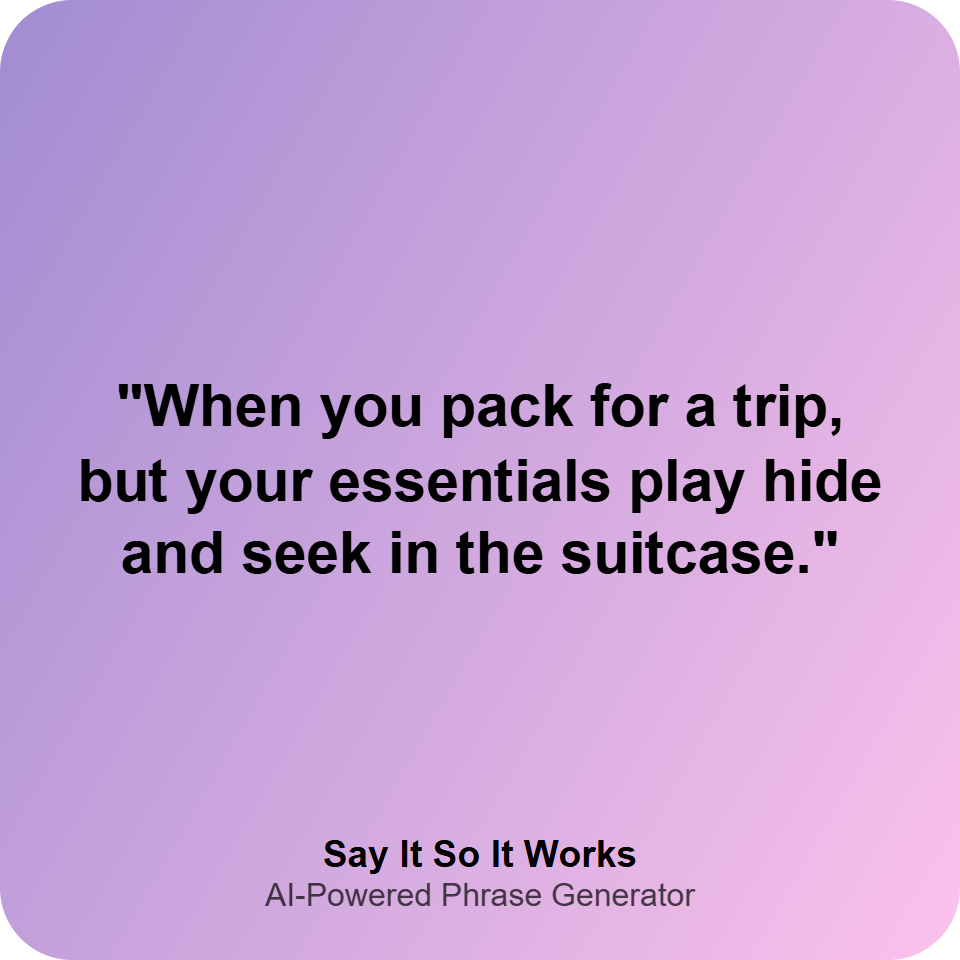 "When you pack for a trip, but your essentials play hide and seek in the suitcase."