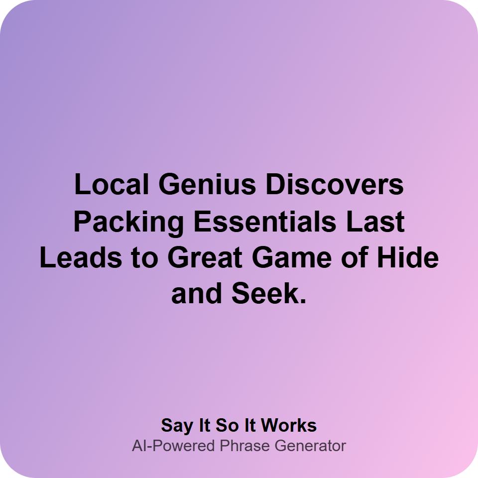 Local Genius Discovers Packing Essentials Last Leads to Great Game of Hide and Seek.