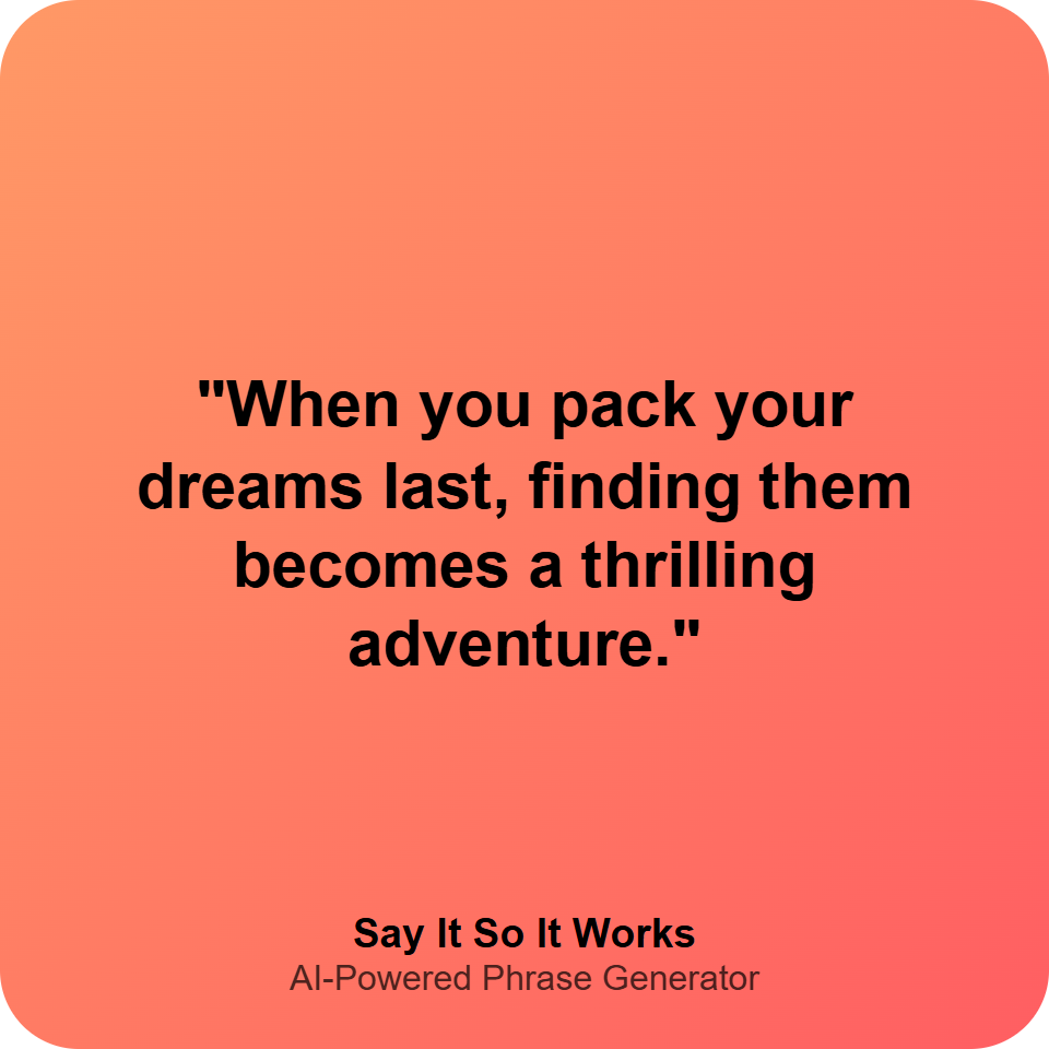 "When you pack your dreams last, finding them becomes a thrilling adventure."