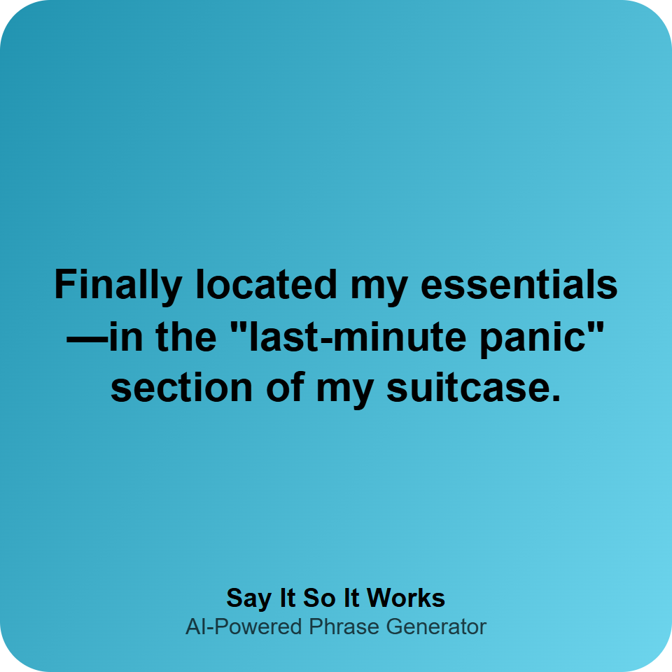 Finally located my essentials—in the "last-minute panic" section of my suitcase.