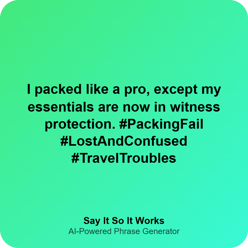 I packed like a pro, except my essentials are now in witness protection. #PackingFail #LostAndConfused #TravelTroubles