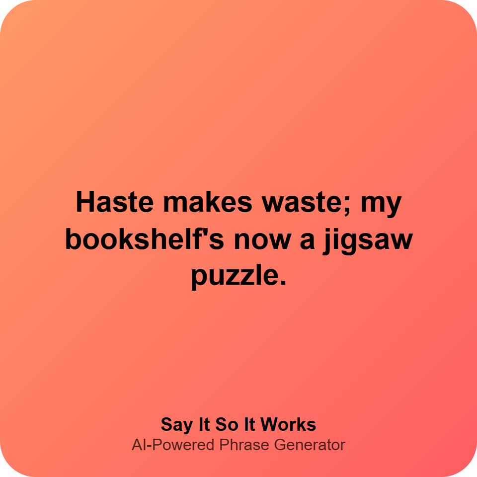 Haste makes waste; my bookshelf's now a jigsaw puzzle.