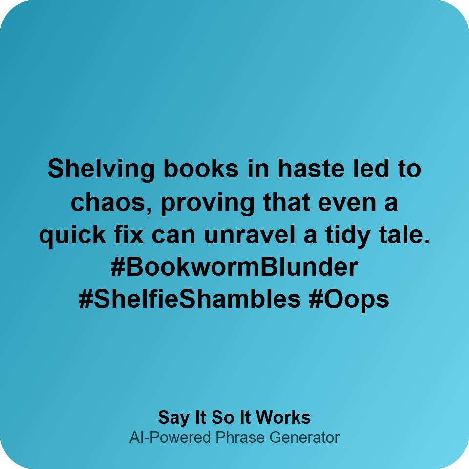Shelving books in haste led to chaos, proving that even a quick fix can unravel a tidy tale. #BookwormBlunder #ShelfieShambles #Oops