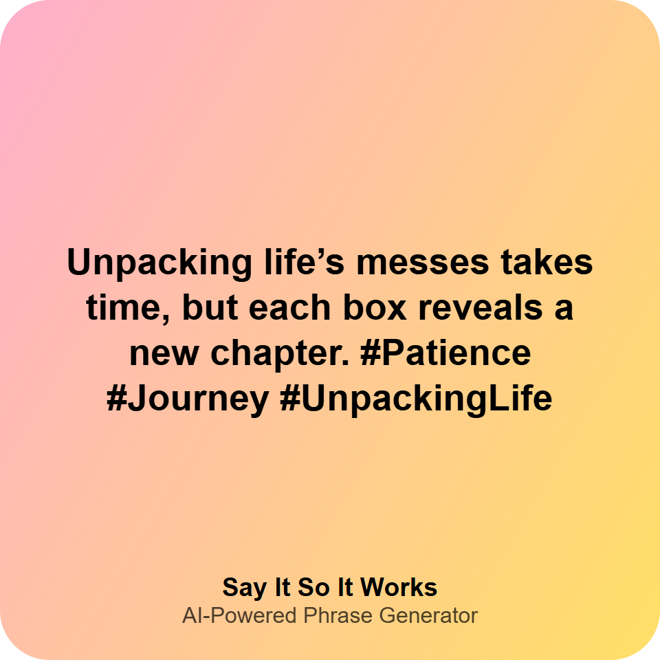 Unpacking life’s messes takes time, but each box reveals a new chapter. #Patience #Journey #UnpackingLife