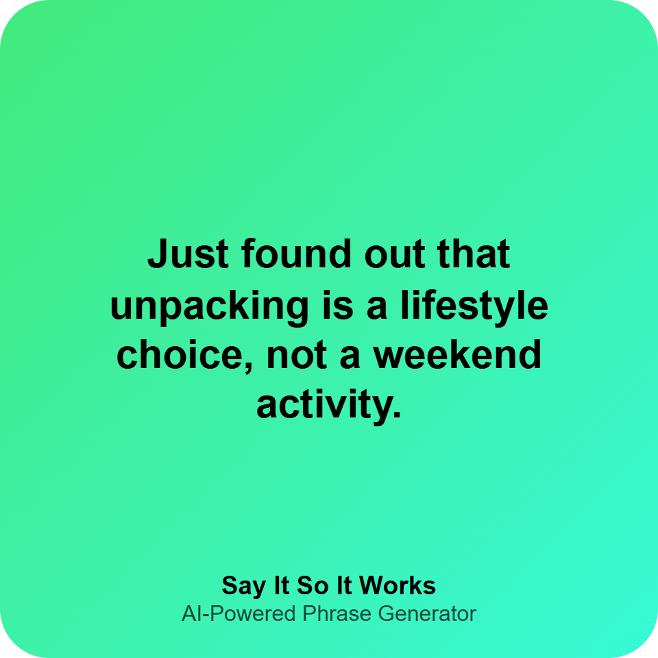 Just found out that unpacking is a lifestyle choice, not a weekend activity.