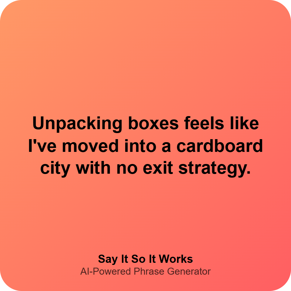 Unpacking boxes feels like I've moved into a cardboard city with no exit strategy.