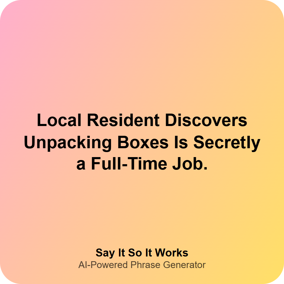 Local Resident Discovers Unpacking Boxes Is Secretly a Full-Time Job.